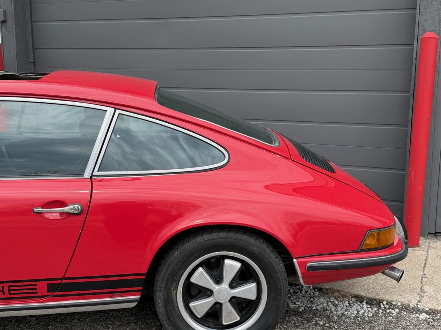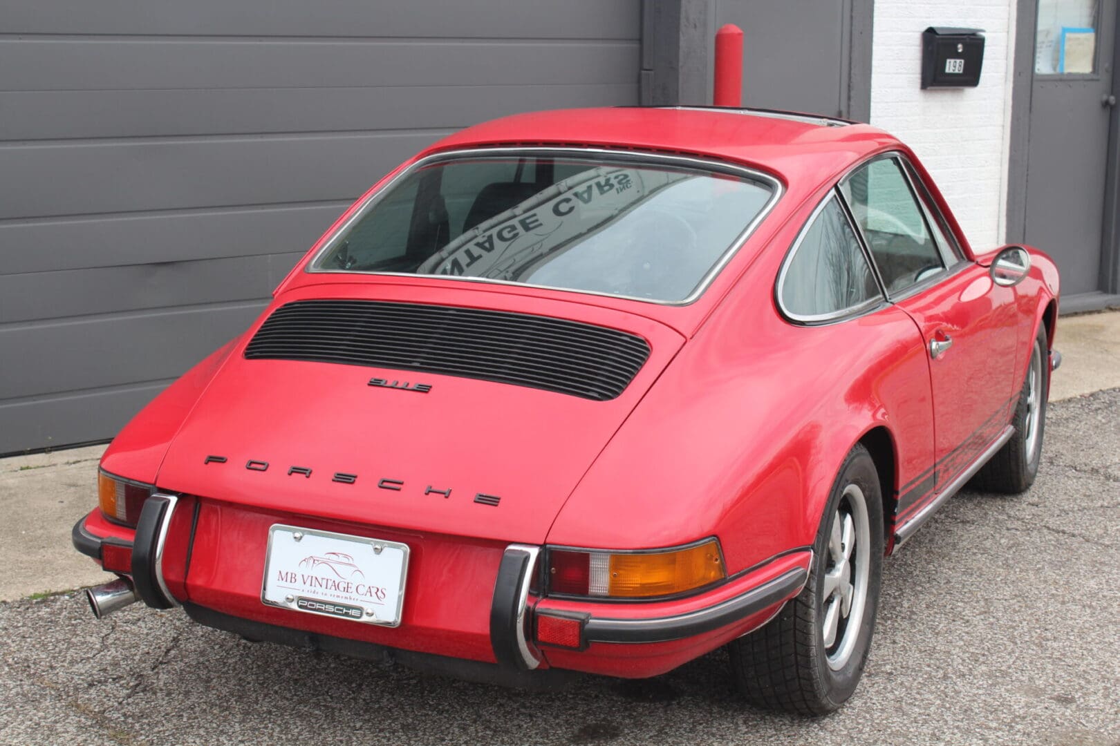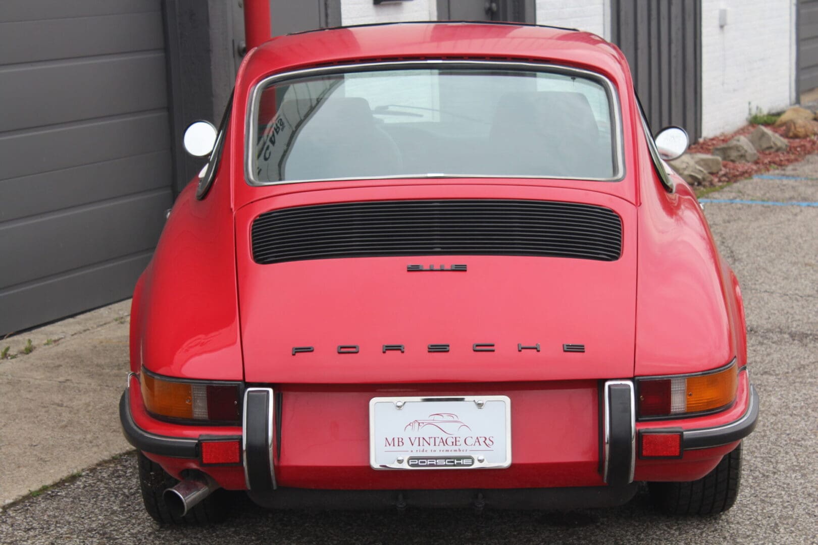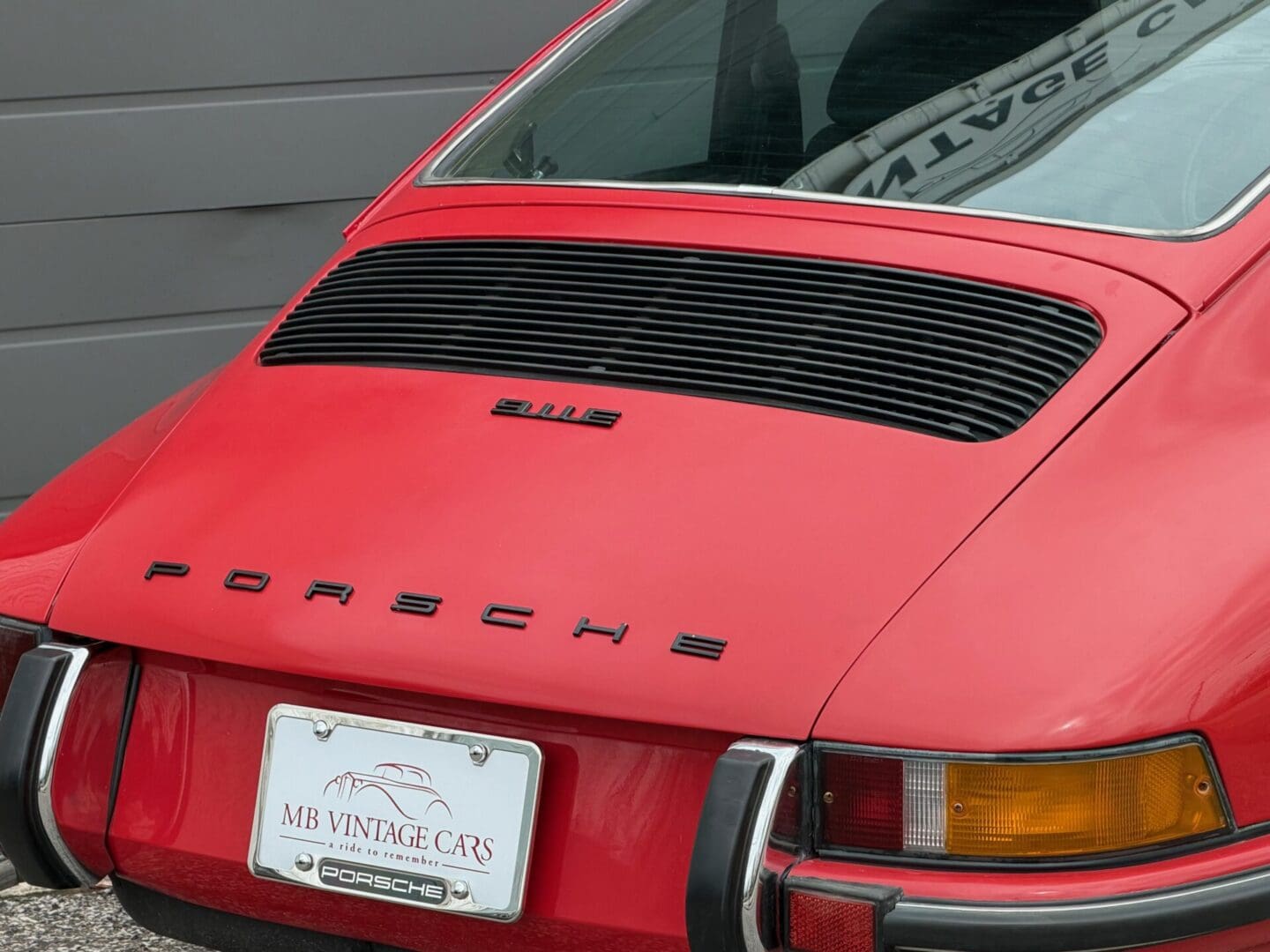 A 1970 Porsche 911E Sunroof Coupe.23k kilometer shows on the odometer. Red with a black interior but the original color is tangerine (paint code 2323) Powered by 1978 Porsche 911SC 3.0L engine with Weber’s and original gearbox. European gauges and power sunroof and windows!