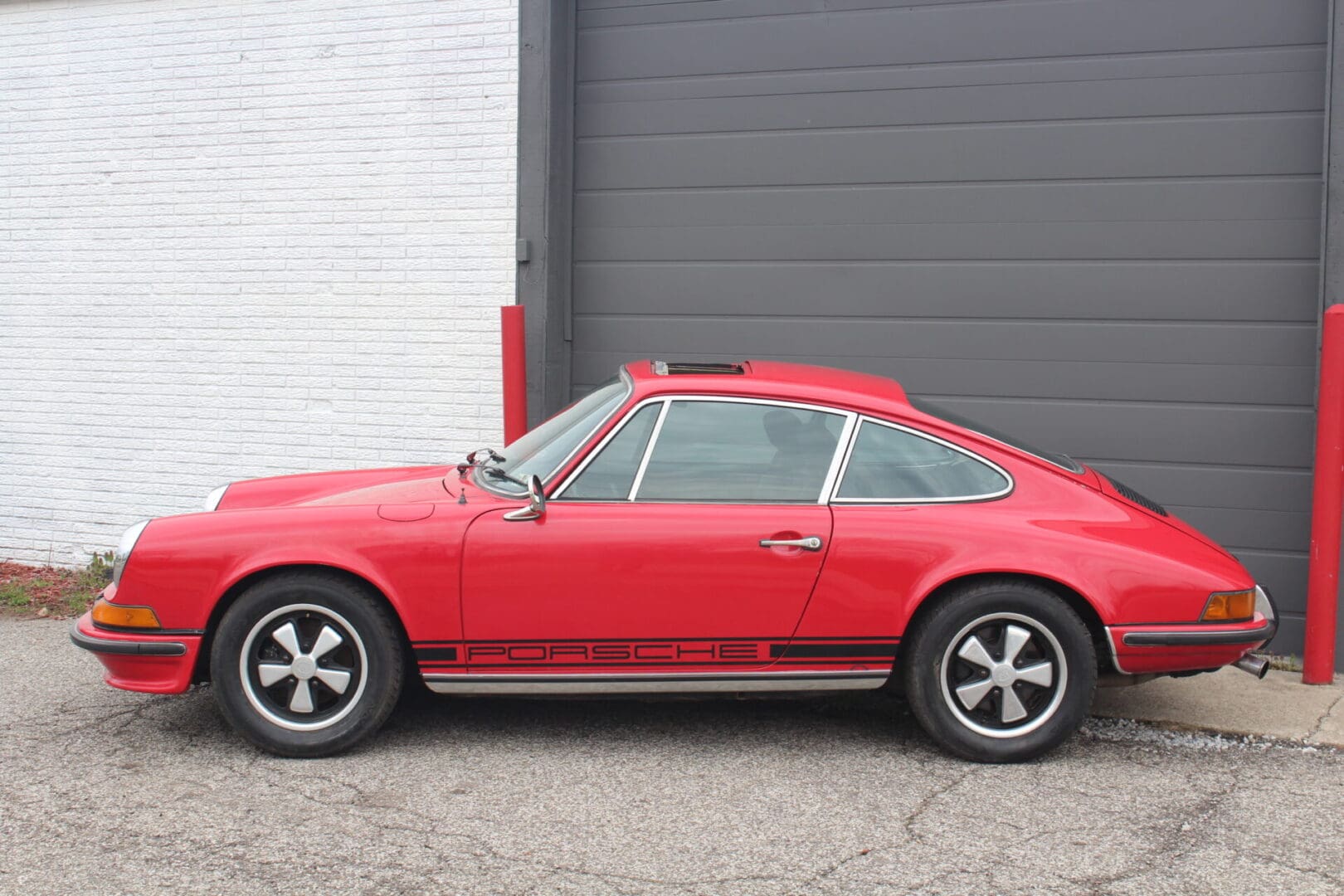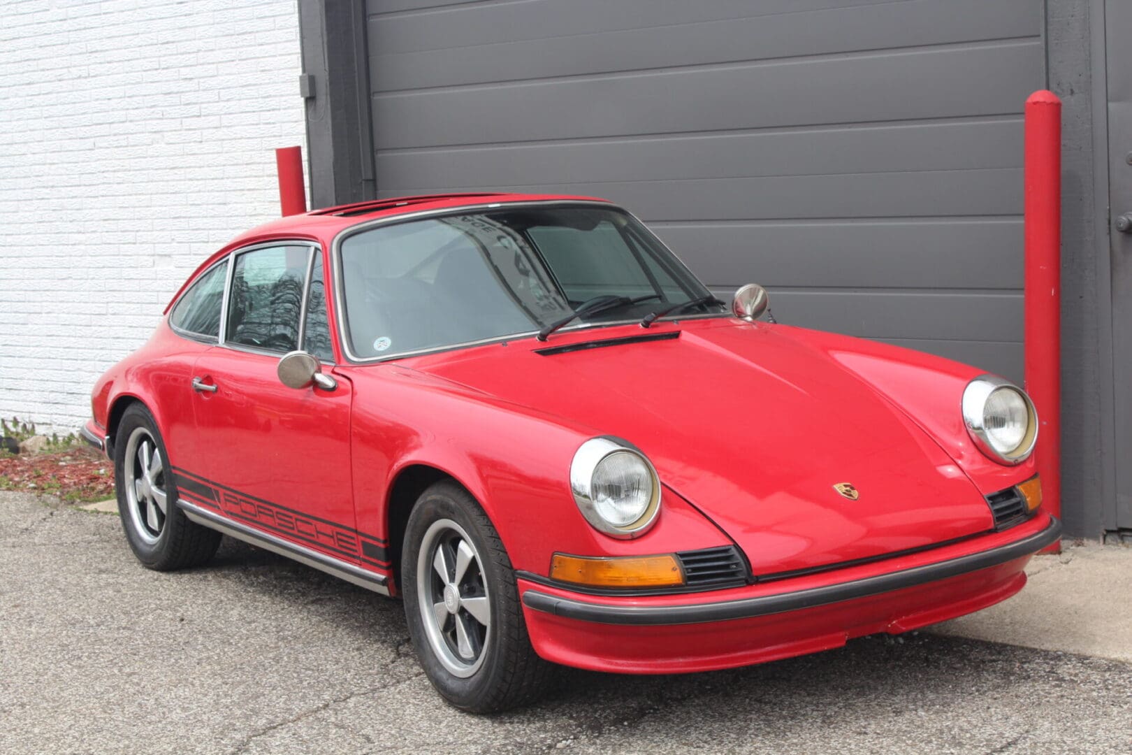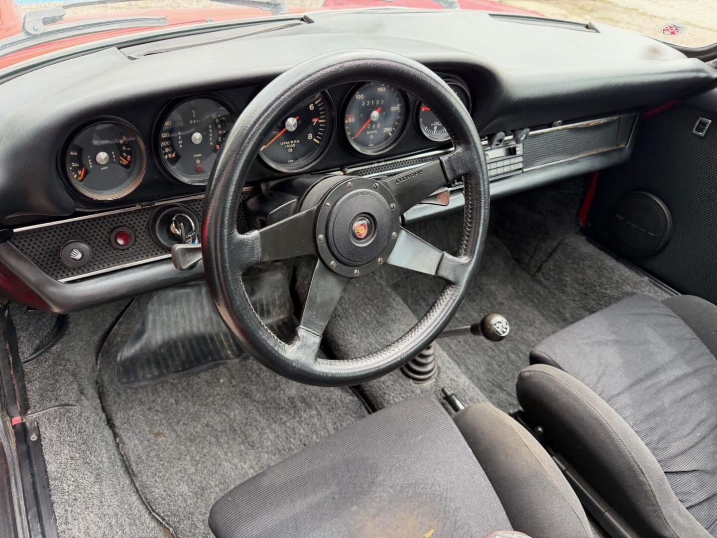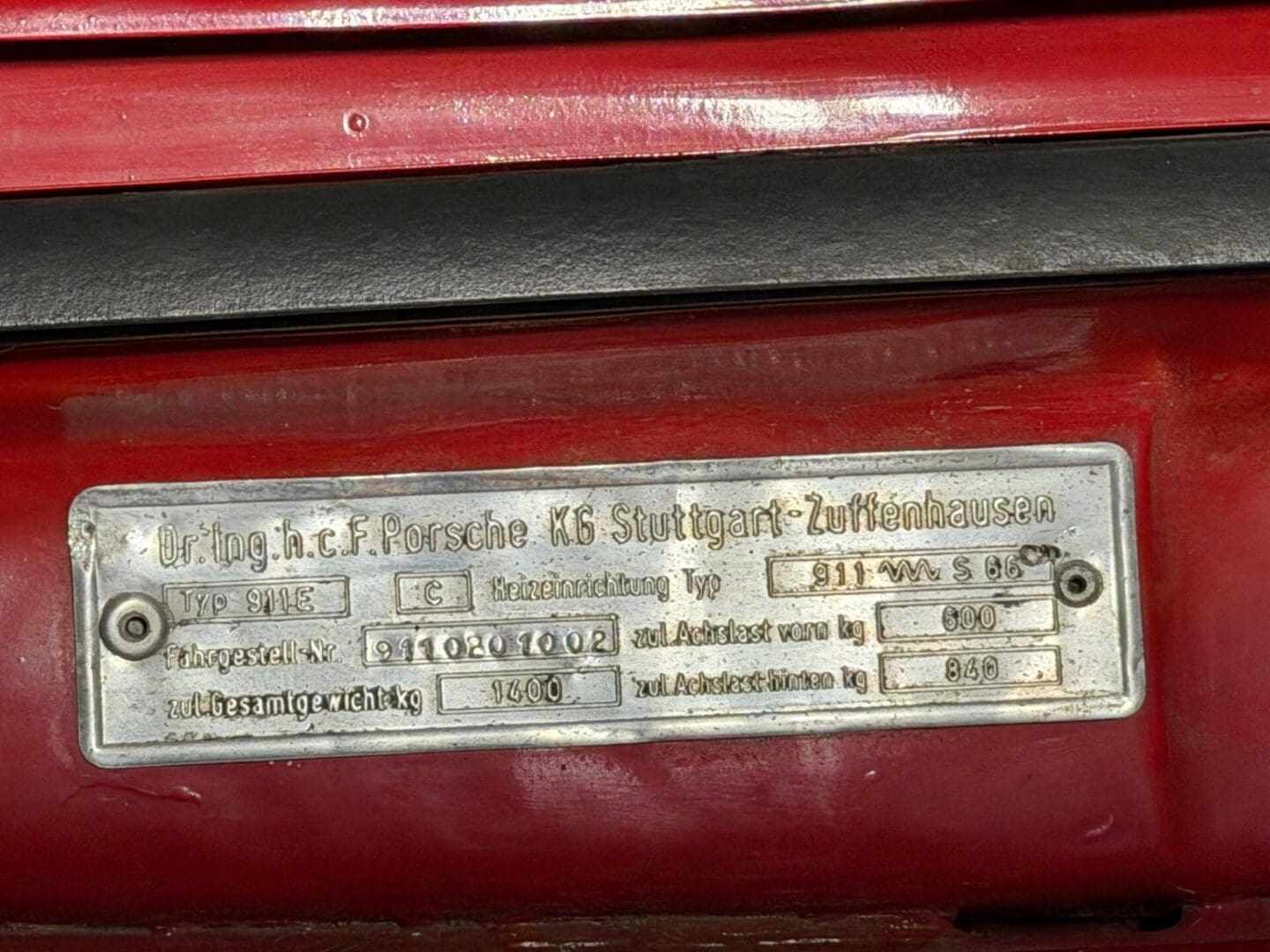 A 1970 Porsche 911E Sunroof Coupe.23k kilometer shows on the odometer. Red with a black interior but the original color is tangerine (paint code 2323) Powered by 1978 Porsche 911SC 3.0L engine with Weber’s and original gearbox. European gauges and power sunroof and windows!