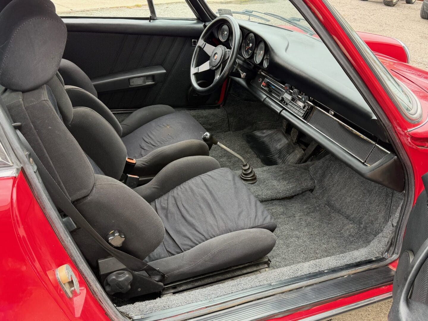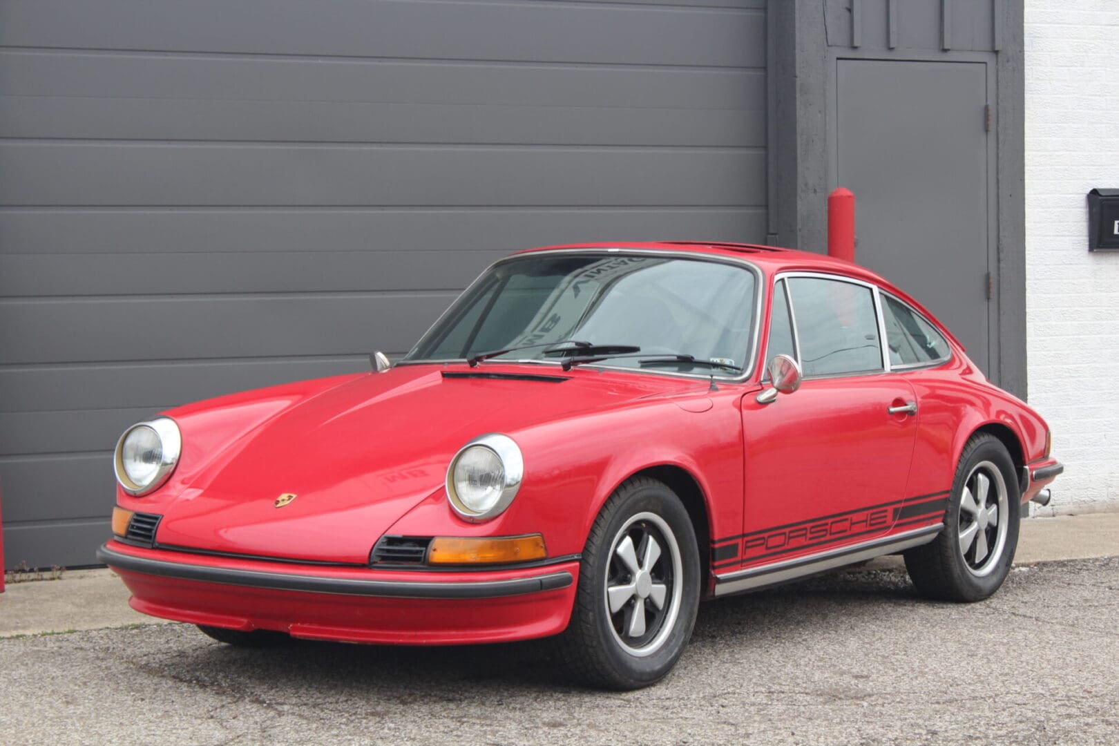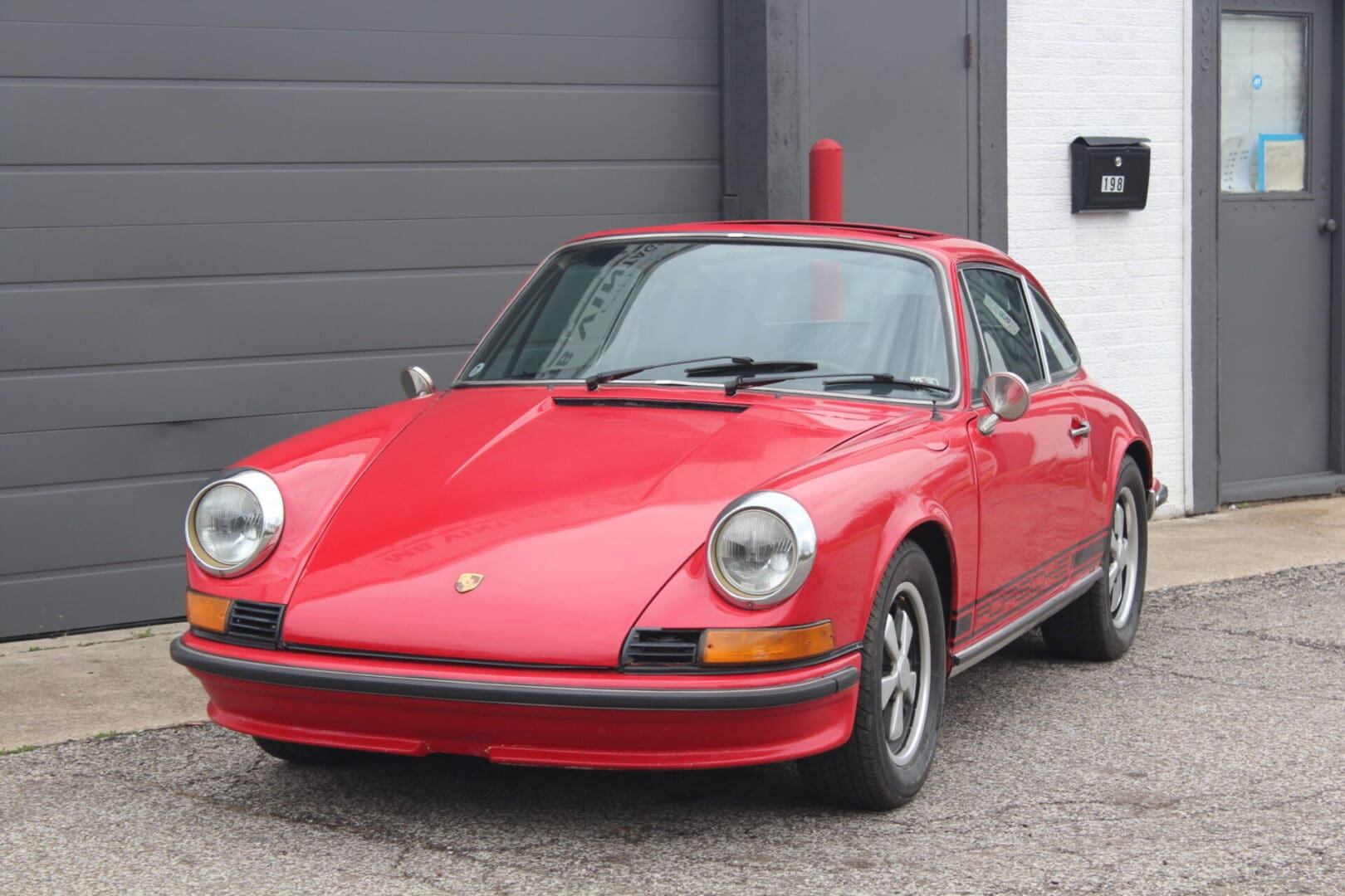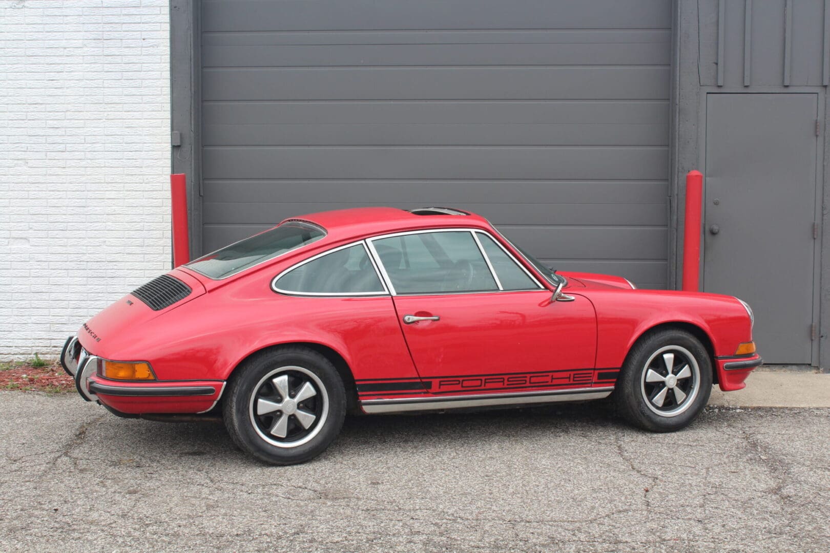 A 1970 Porsche 911E Sunroof Coupe.23k kilometer shows on the odometer. Red with a black interior but the original color is tangerine (paint code 2323) Powered by 1978 Porsche 911SC 3.0L engine with Weber’s and original gearbox. European gauges and power sunroof and windows!