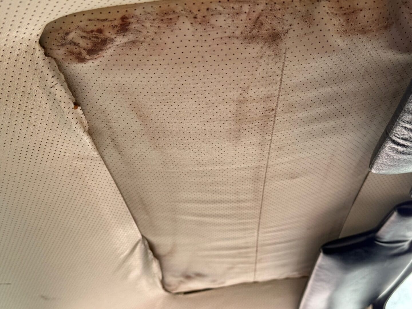 The interior looks very good, with Ricaro sports seats. Some stains on the headliner around the sunroof. Comes with new black headliner.